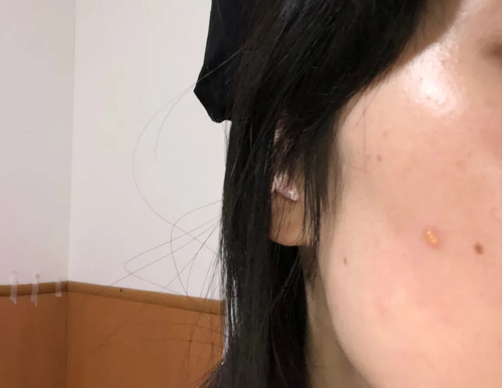 頬に謎の水ふくれが!