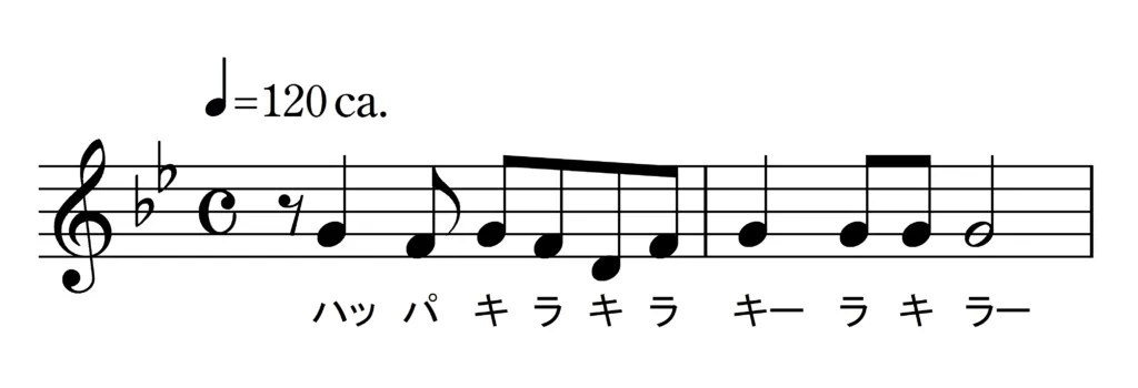 ワンコーラス聴くうちに7回も「♪ハッパキラキラキーラキラ」のフレーズを聴かされていることになります。