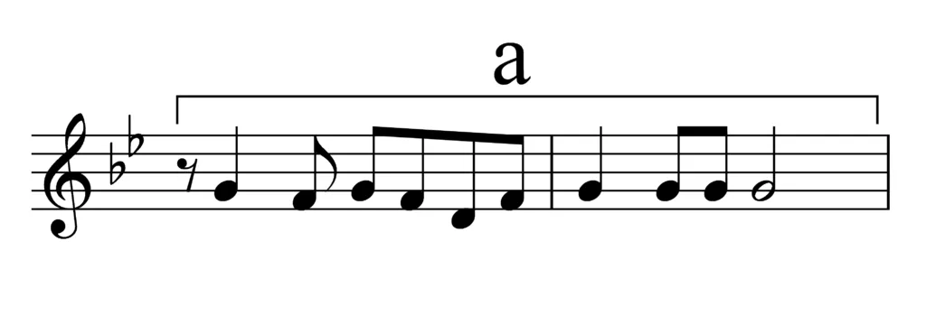 あまり意識はしないと思いますが、17~20小節目でも「a」の類似型を聴かされています。